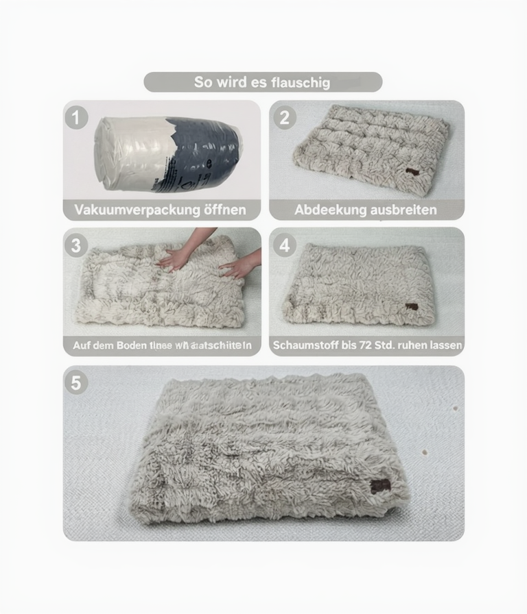 Wichtig: Das Bett wird vakuumversiegelt geliefert. Bitte 48-72 Stunden ausdehnen lassen. Für schnellere Einrichtung einfach schütteln und klopfen.